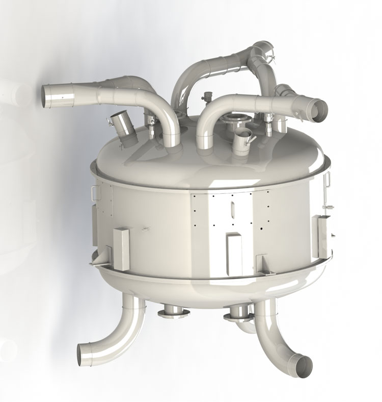 Unsere Wärmetauscher bauen wir sowohl für den chargen-, wie auch den kontinuierlichen Betrieb. Bei den Wärmetauschern wird das Schüttgut fluidisiert, d.h. von unten mit Luft durchströmt. Dadurch erhält das Schüttgut flüssigkeitsähnliche Eigenschaften, was den Temperaturaustausch an den Heiz- und/oder Kühlflächen deutlich erhöht.